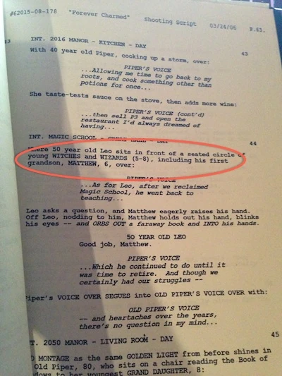 - Le "Book Of Three, Vol. 2" affirme que Matthieu est né en 2036, puisqu'il a quatorze ans en 2050 et qu'il est le petit-fils le plus âgé. Le livre et le scénario de "Forever Charmed " mentionnent qu'il a six ans quand on le voit assister à la classe de son grand-père qui placerait cette scène vers 2042. Cela signifie également que Wyatt, Chris et Melinda ont commencé à avoir des enfants dans la vingtaine au début des années 2030.
