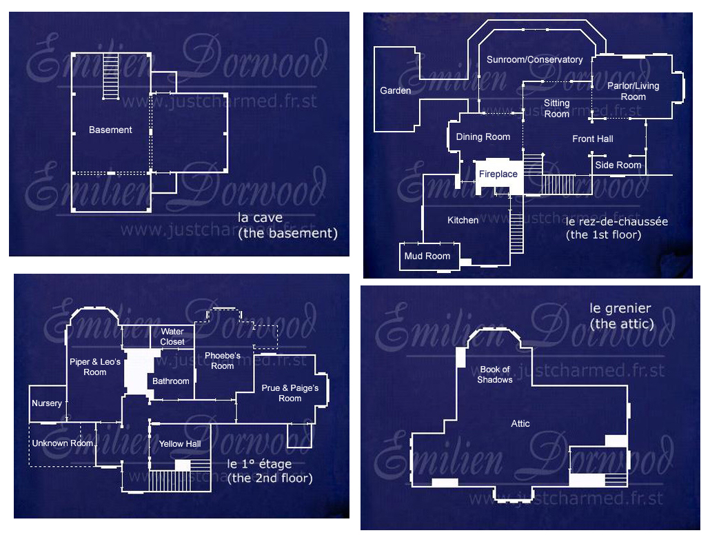 - In the first two seasons, the real inside of the Manor was used whenever shooting an outdoor scene. This caused the wall and staircase of the real house to be seen, which are directly at the door when entering. However, in the Halliwell Manor, the staircase is further away with the parlor in between.