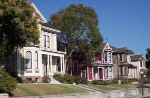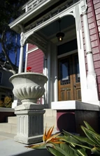 The "Halliwell Manor", known as the Innes Home, is built in the Eastlake Victorian style and was built in 1887 for City Councilman Daniel Innes. The house has some hints of Japanese architecture in the decorative porch woodwork. Its second owner bought the house in 1920, and remained there until his death in 1971, having added features like a wine cellar. This house is also owned by Murray Burns and might be one of the most familiar Victorian style houses to contemporary viewers.